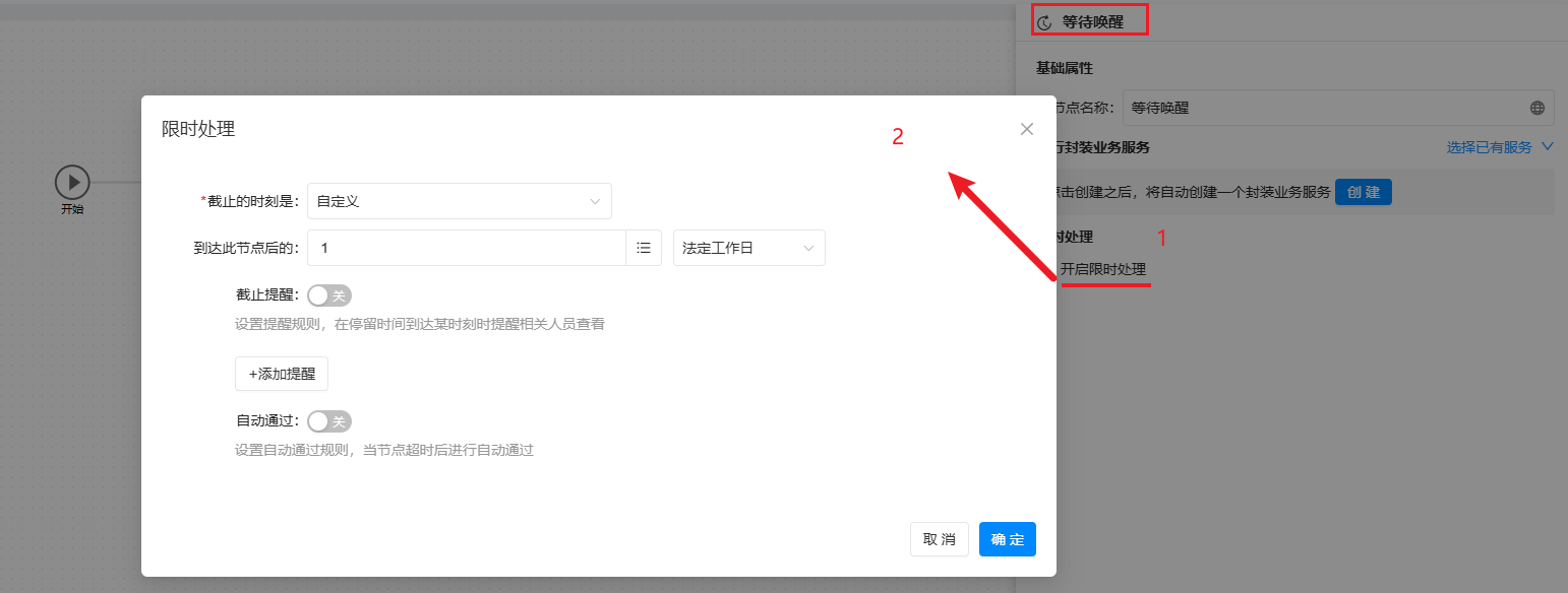 • 首次设置,勾选 「开启限时处理」,会弹出的限时处理设置窗口。