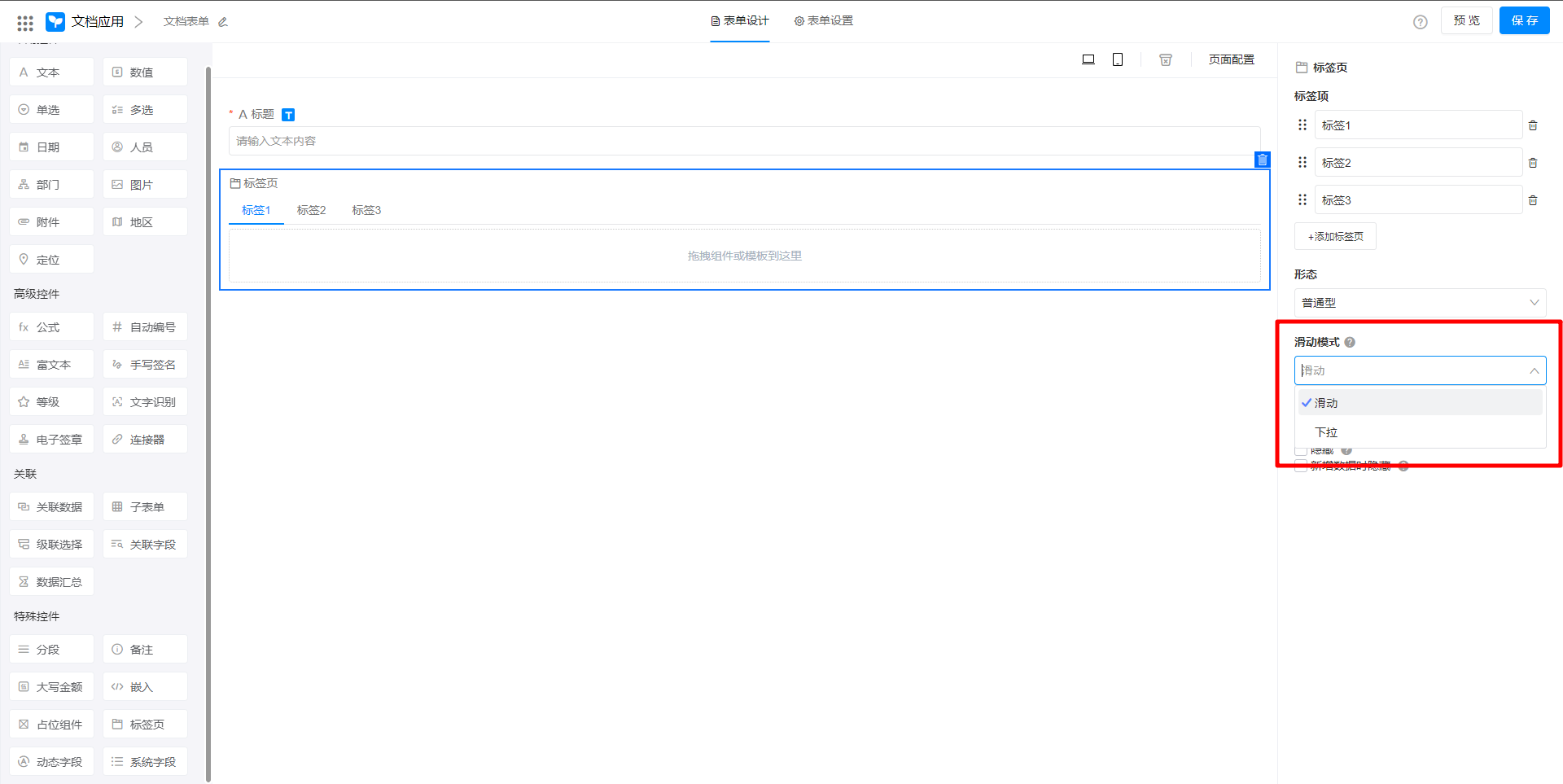 有两种滑动模式:滑动(默认)、下拉: